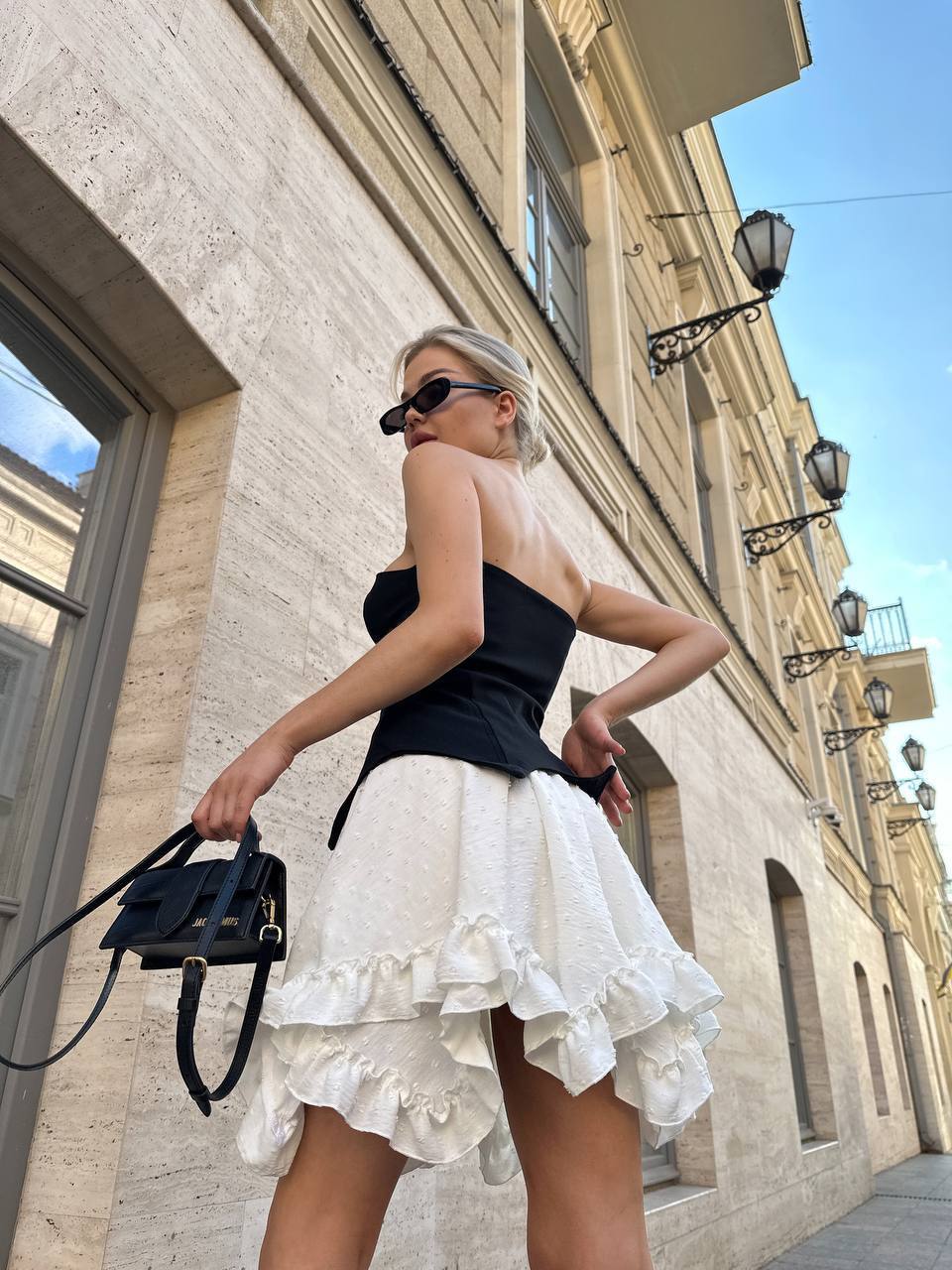 Gorset z elastycznego jeansu dobrze się rozciąga.