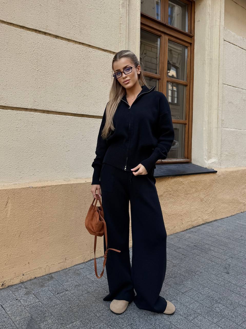 Komfortowe spodnie z elastycznym pasem, dopasowujące się do sylwetki.