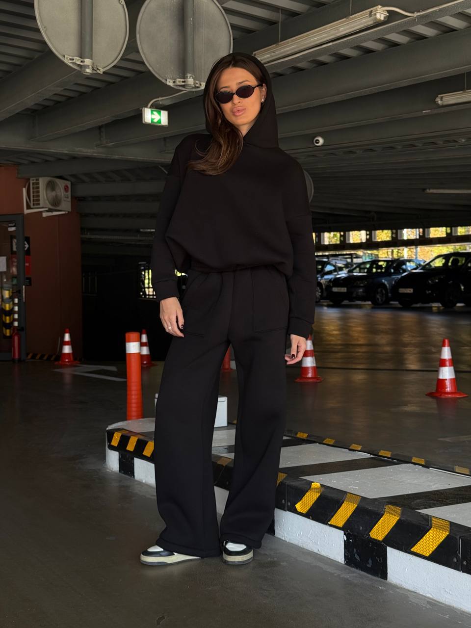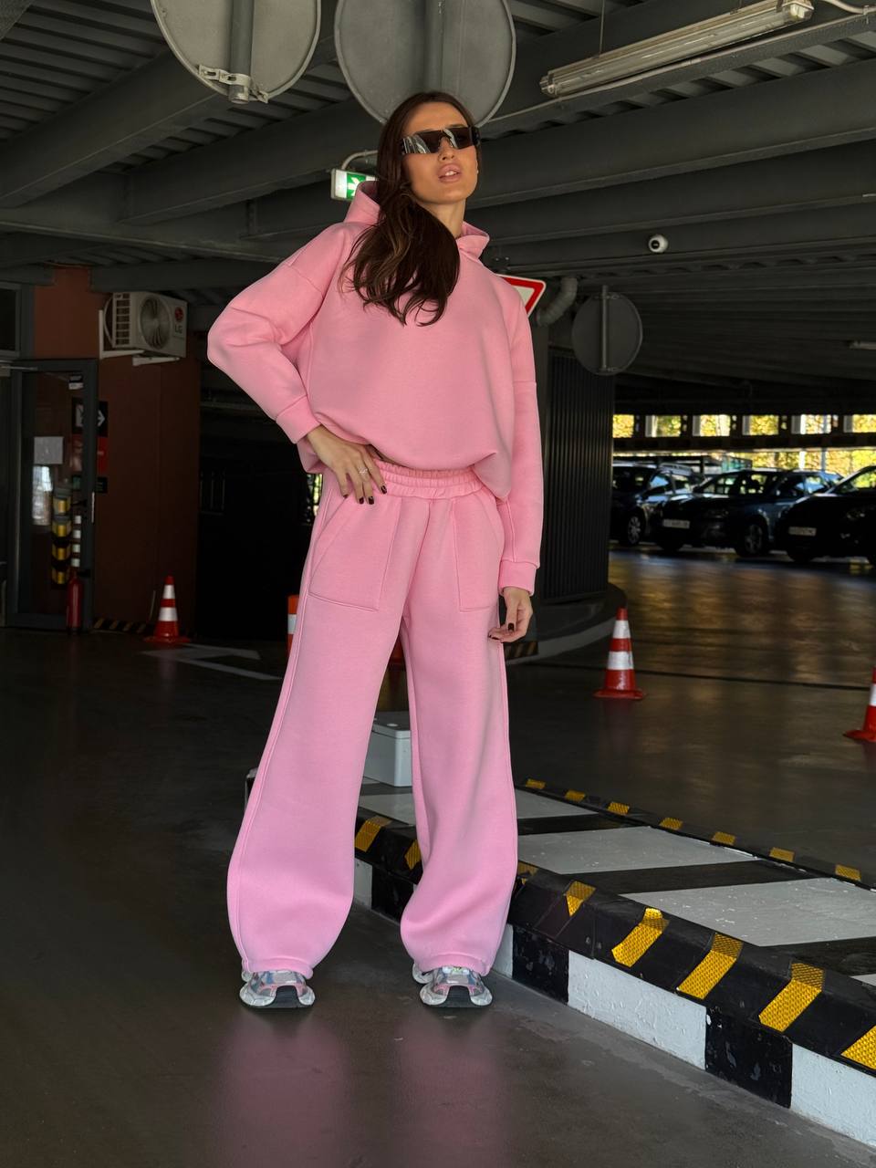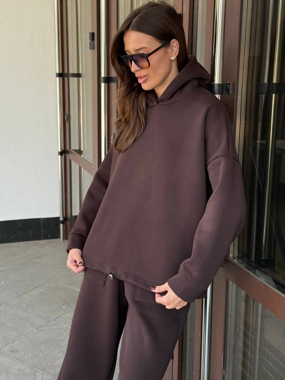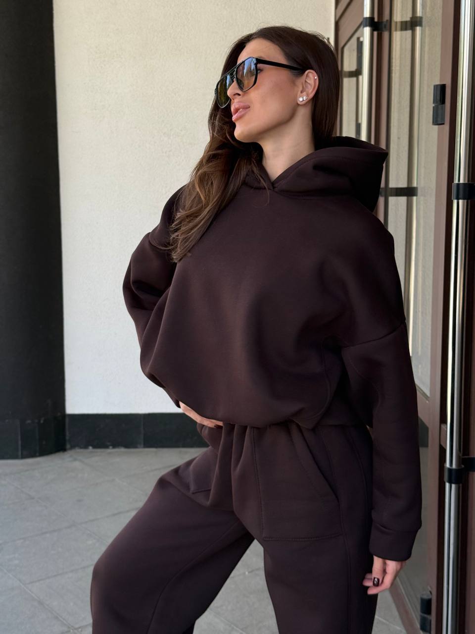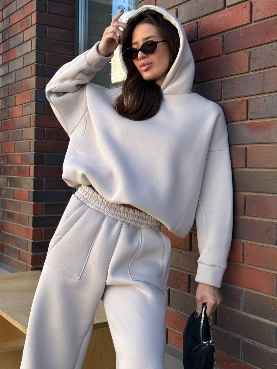 Komfortowy i stylowy zestaw idealny na chłodniejsze dni. Wykonany z przyjemnej w dotyku dzianiny bawełnianej z ociepleniem wewnątrz, dzięki czemu zapewnia ciepło i wygodę. Luźny krój bluzy i spodni gwarantuje swobodę ruchów, a modne kolory sprawdzą się w codziennych stylizacjach.