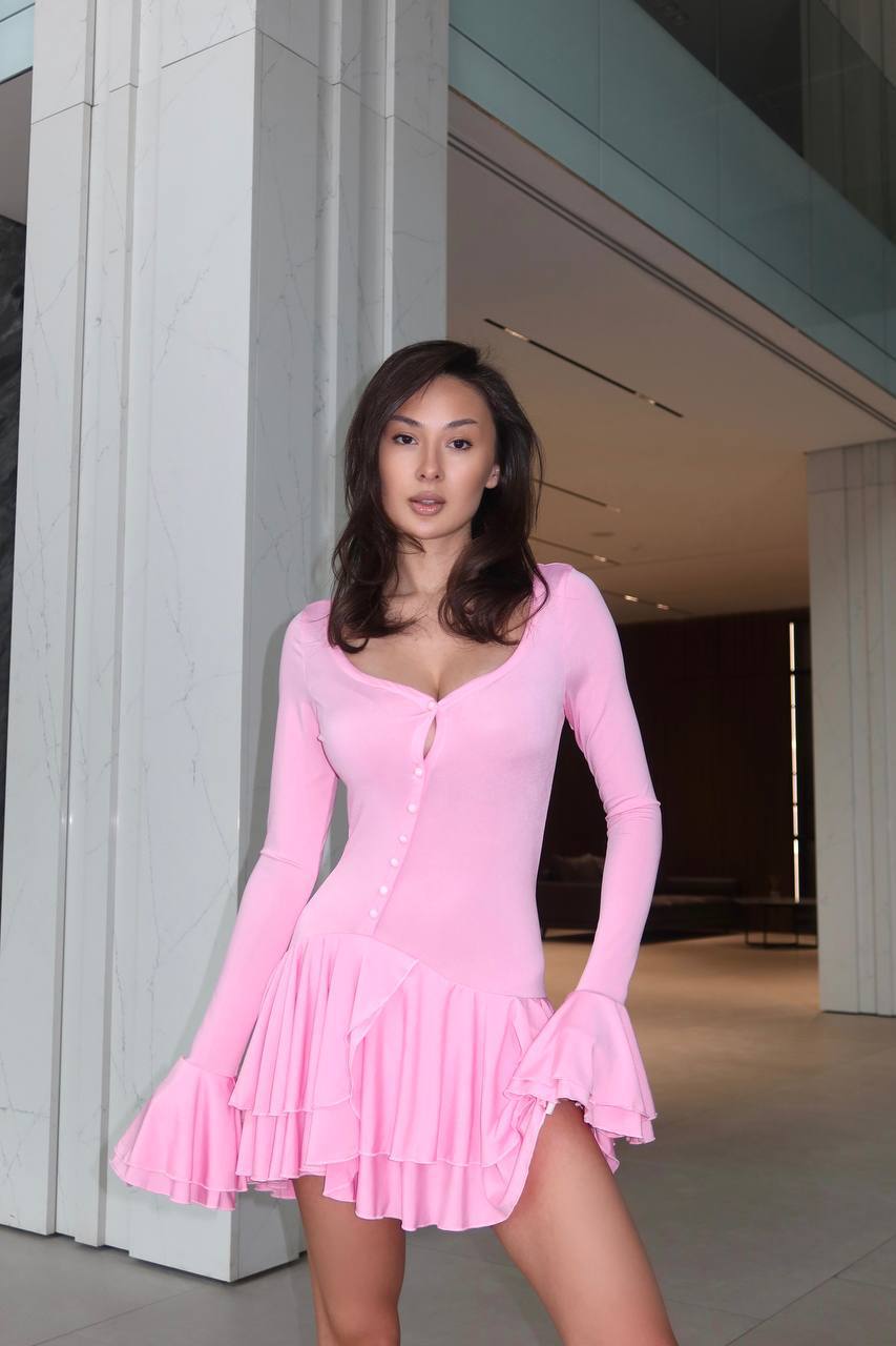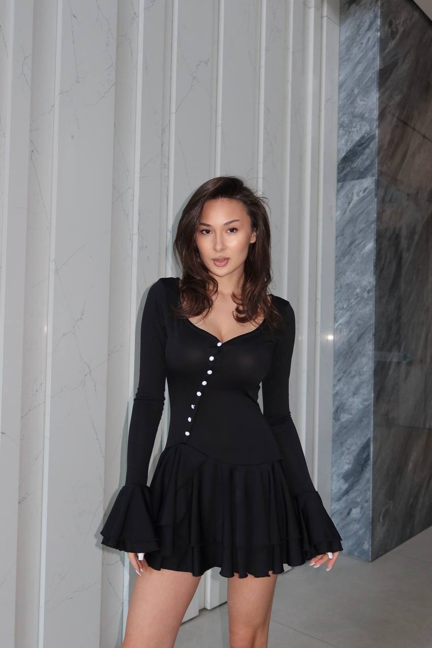 Miękki materiał pięknie układa się na sylwetce i podkreśla talię